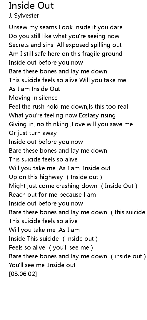 | [01:58.91] | Might just come crashing down (Inside Out) |