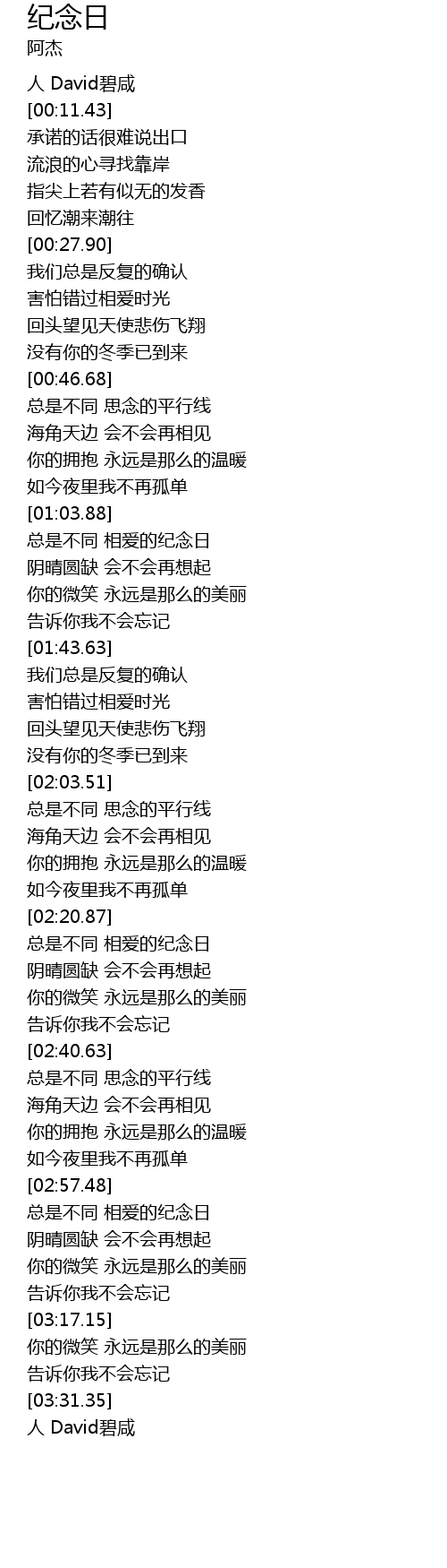 | [02:57.74] | zǒng shì bù tóng xiāng ài de jì niàn rì |