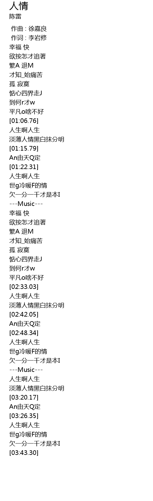 | [01:11.36] | 淡薄人情黑白抹分明 |