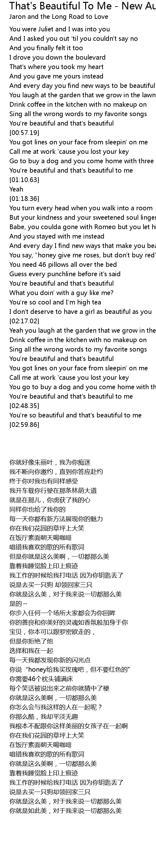 You're so beautiful and that's beautiful to me |