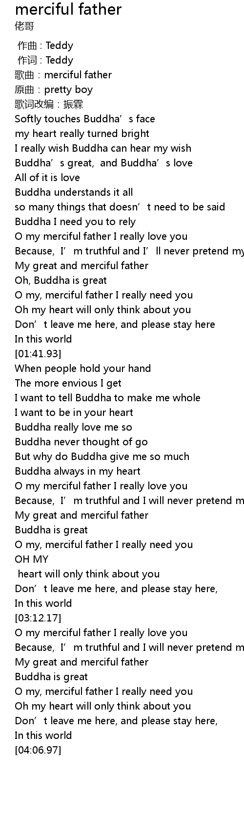 | [00:28.74] | Buddha' s great, and Buddha' s love |