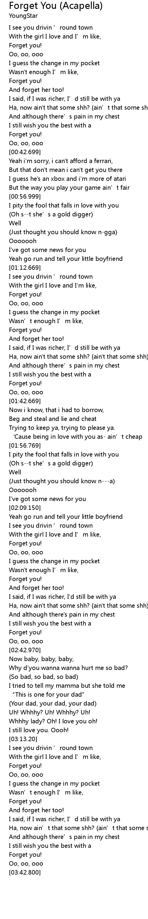 | 歌曲 | Forget You (Acapella) |