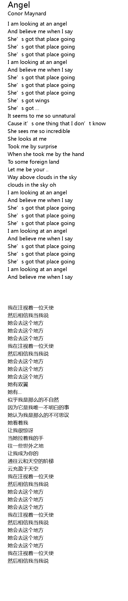 | [00:02.090] | I am looking at an angel |