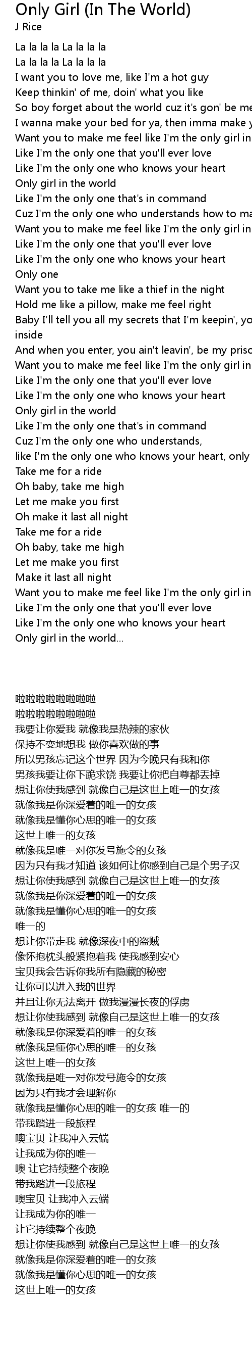 Want you to make me feel like I'm the only girl in the world |