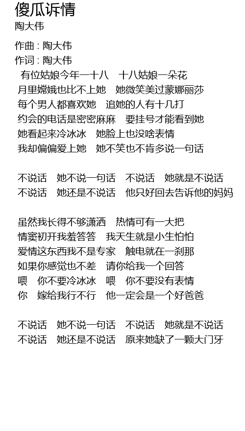 | 我却偏偏爱上她 她不笑也不肯多说一句话 | |