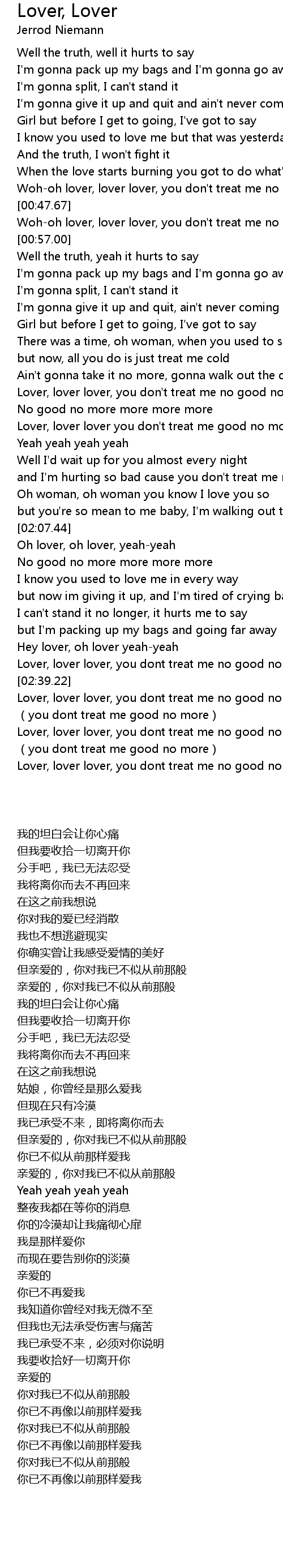 | [02:41.65] | Lover, lover lover, you dont treat me no good no more |