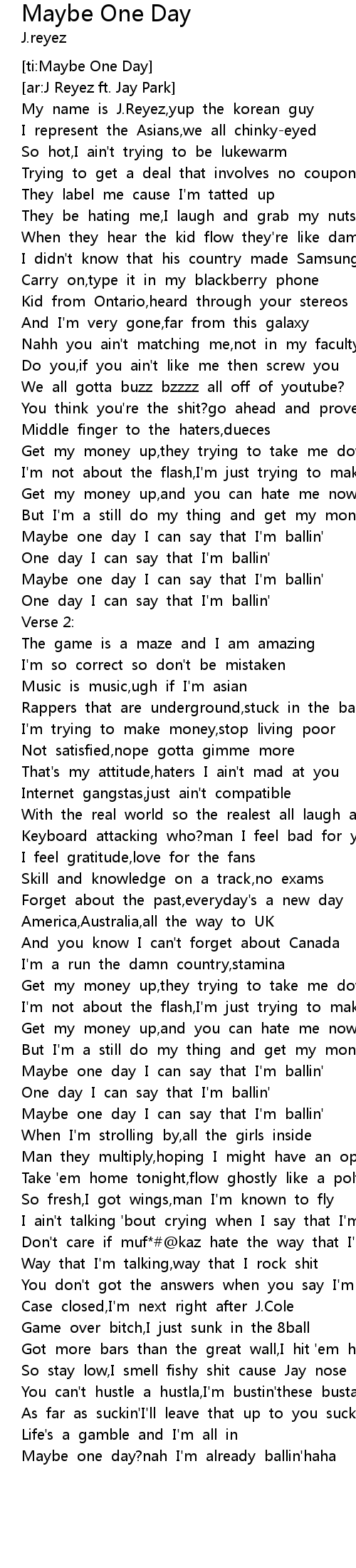 | [03:06.682] | Maybe one day?nah I'm already ballin'haha |