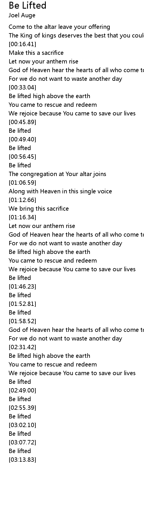 [03:03.60] Be lifted
