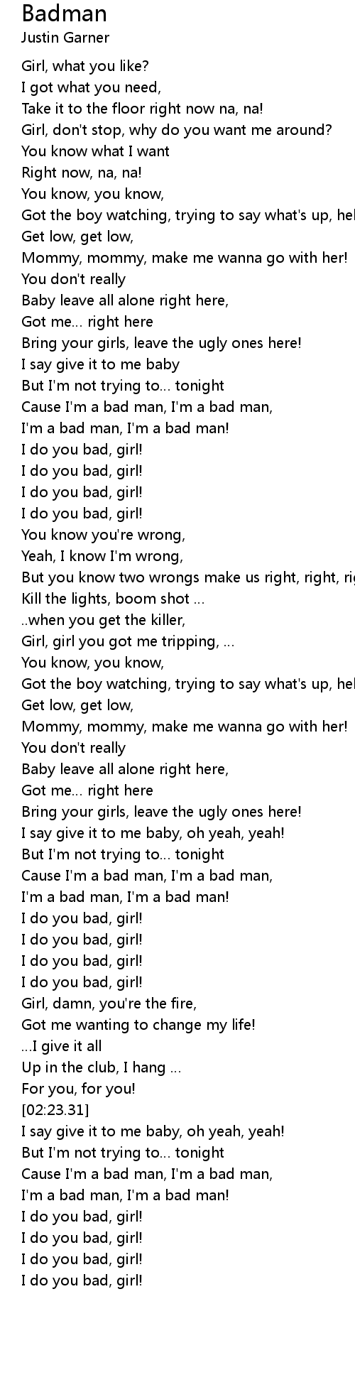 | [02:36.50] | I'm a bad man, I'm a bad man! |