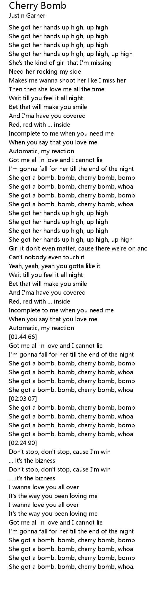 | [03:02.28] | She got a bomb, bomb, cherry bomb, bomb |