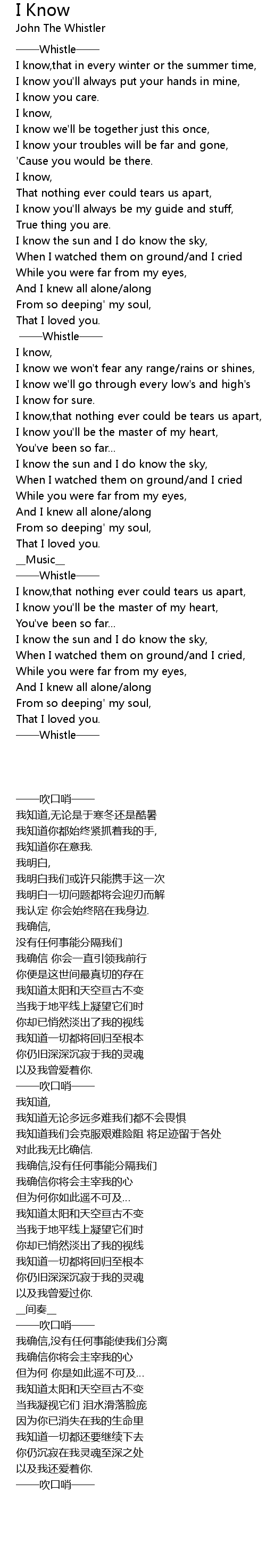 | 歌曲 | I Know |
