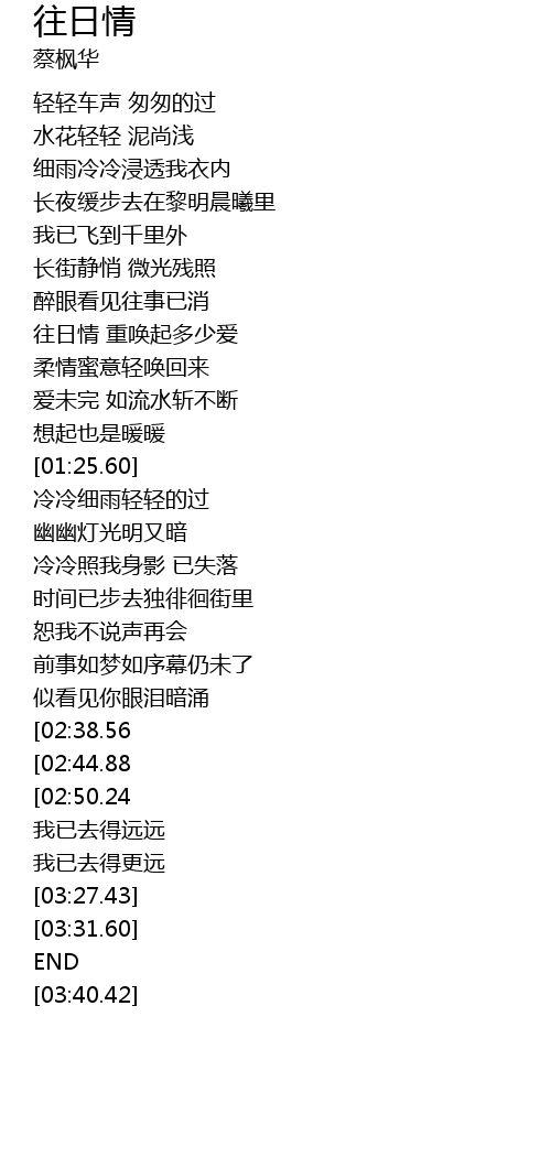 | [03:09.43][02:44.88] | 重提旧爱 心已泯灭 |