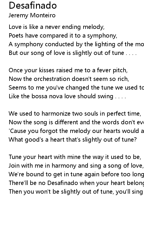 There'll be no Desafinado when your heart belongs to me completely |