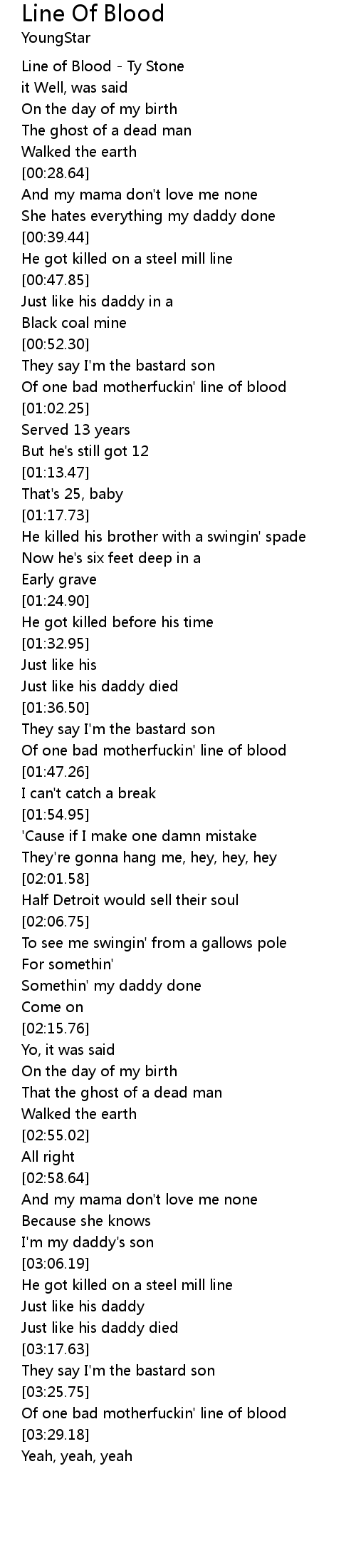 Of one bad motherfuckin' line of blood |