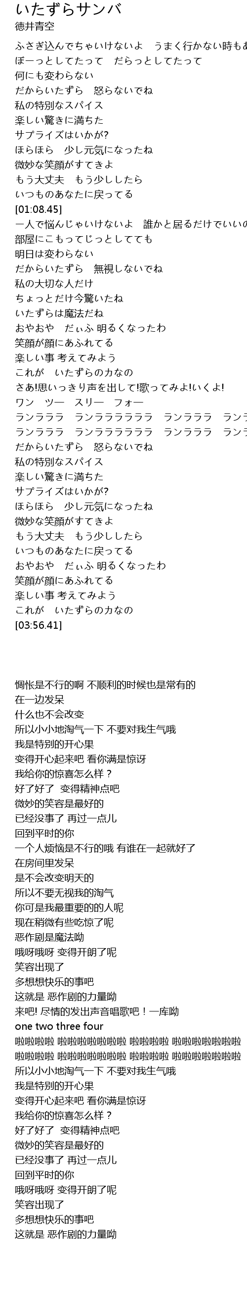 | [03:52.13] | 这就是 恶作剧的力量呦 |