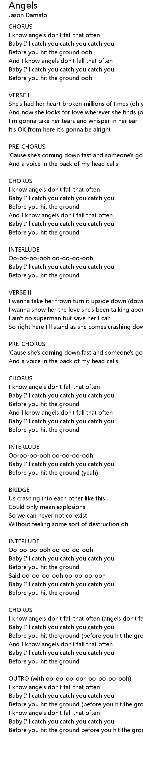 I know angels don't fall that often |