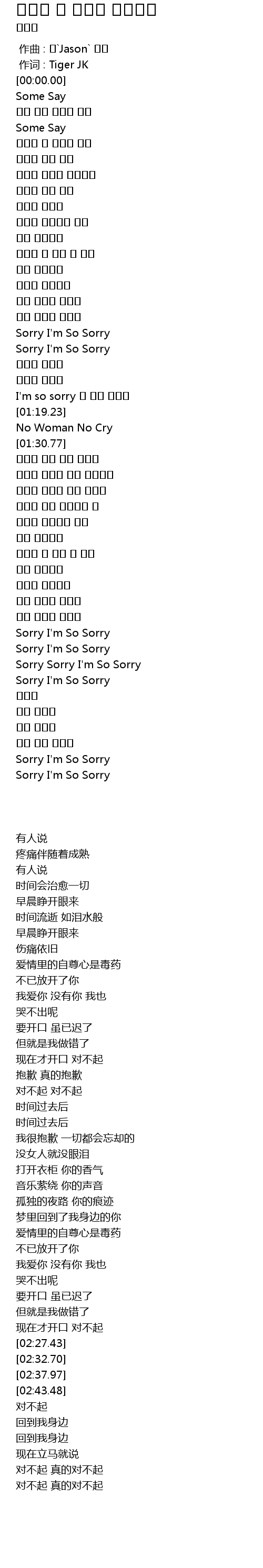 | [02:37.97] | Sorry Sorry I' m So Sorry |