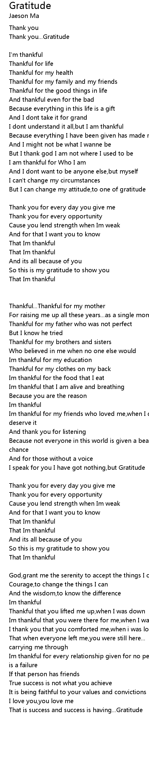 | But I can change my attitude,to one of gratitude | |
