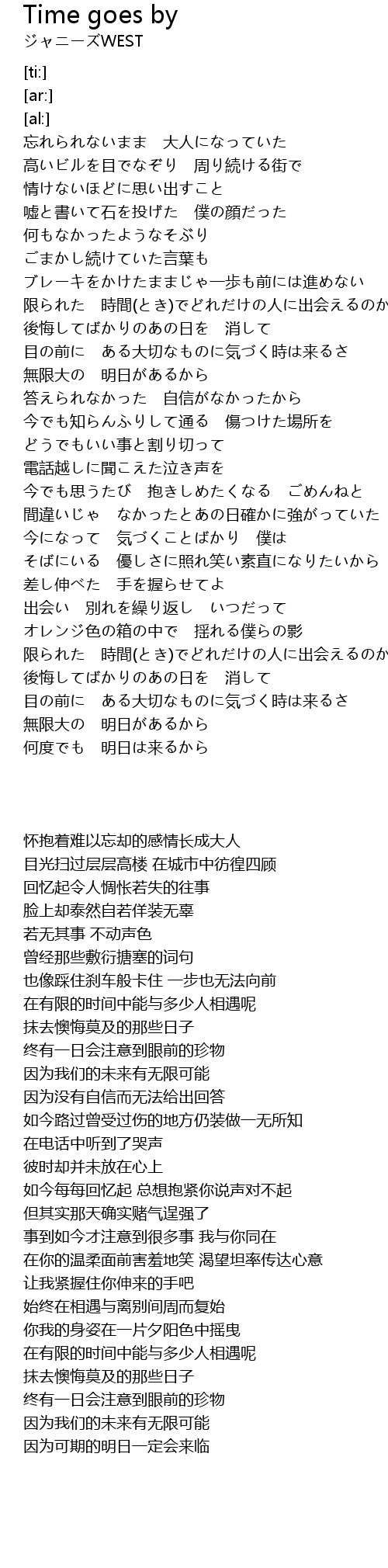 | [03:23.33] | 目の前に ある大切なものに気づく時は来るさ |