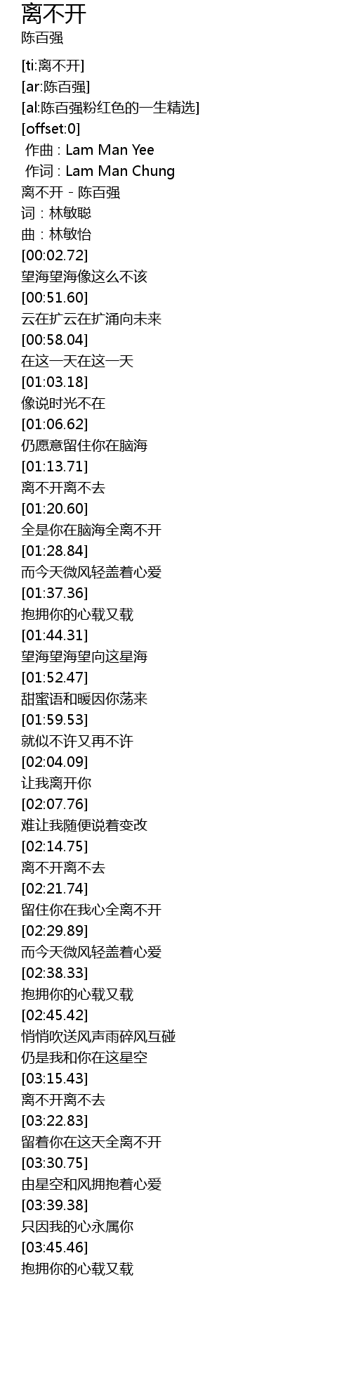 | [00:00.00] | zuo qu : Lam Man Yee |