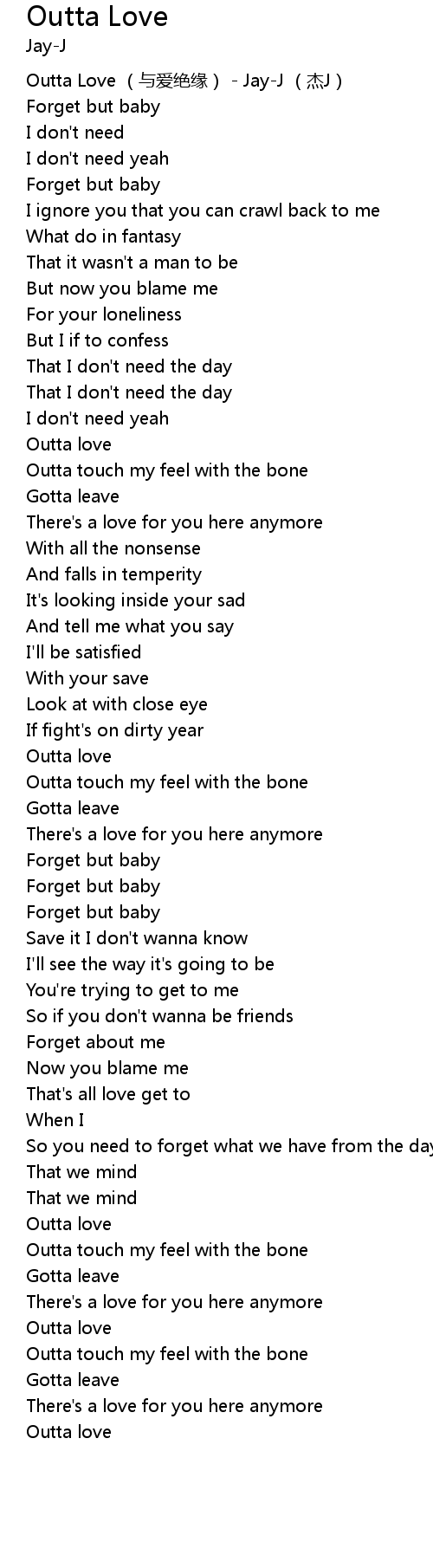| [00:00.281] | Outta Love yu ai jue yuan JayJ jie J |