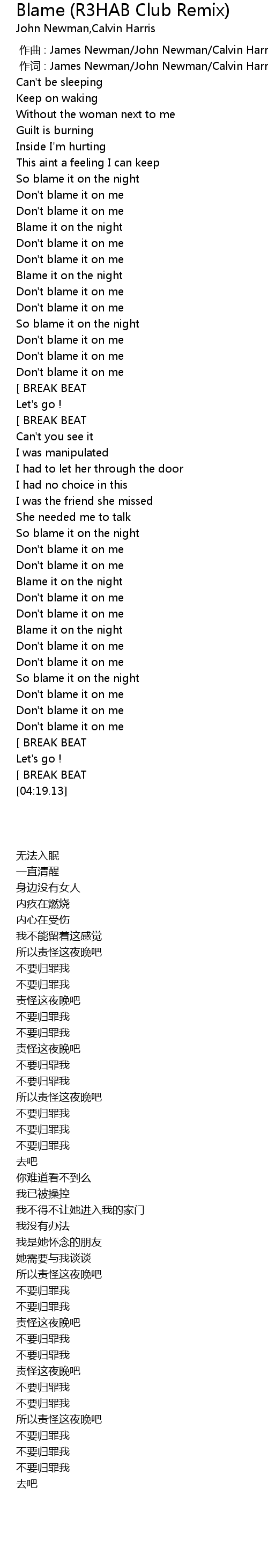 | 歌曲 | Blame (R3HAB Club Remix) |