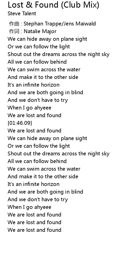 | [01:42.74] | We are lost and found |