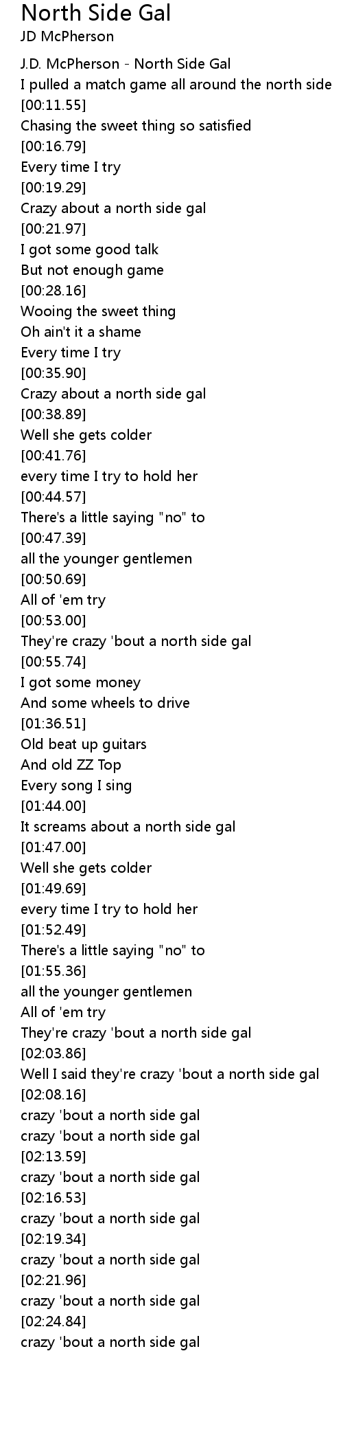 J.D. McPherson - North Side Gal |