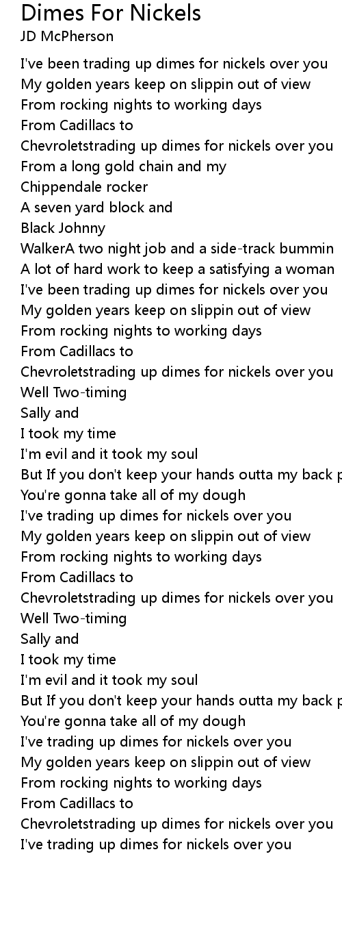 I've been trading up dimes for nickels over you |