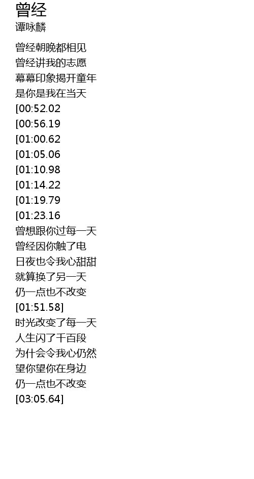 | [01:30.07] | ceng xiang gen ni guo mei yi tian |