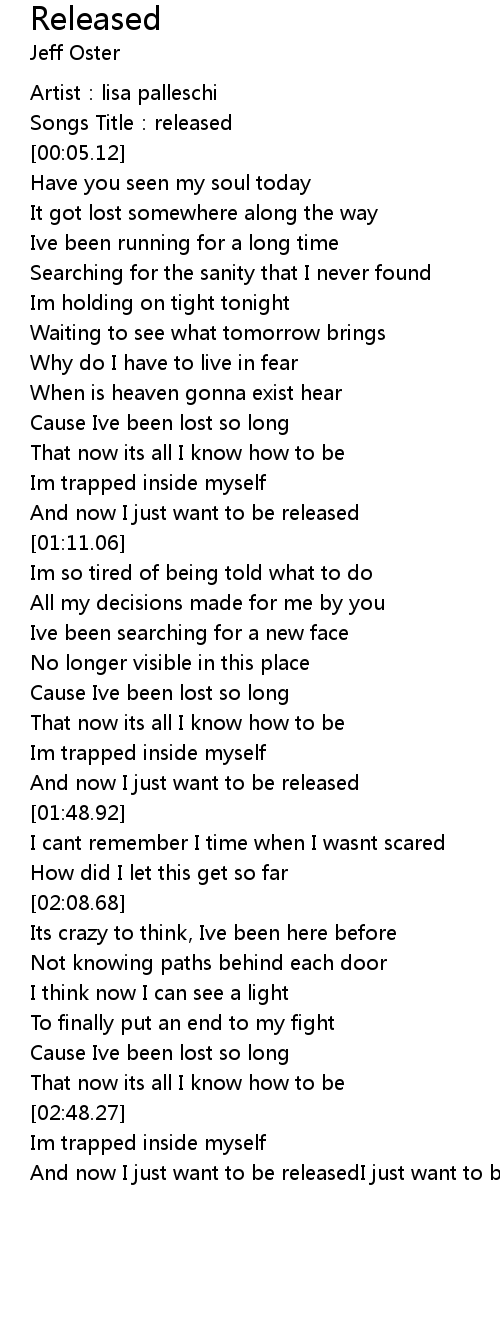 | [02:52.41] | And now I just want to be releasedI just want to be released |