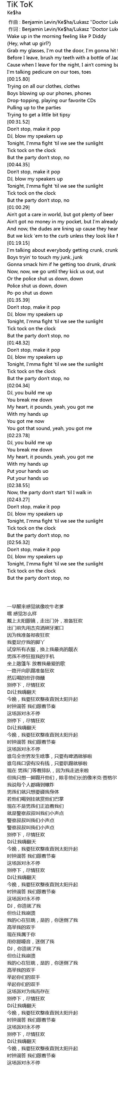 | [00:00.11] | zuò cí : Benjamin Levin Ke ha Lukasz " Doctor Luke" Gottwald |