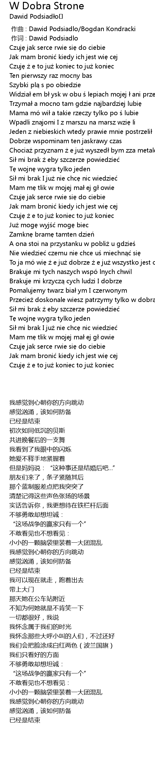| [01:58.08] | Przecie doskonale wiesz patrzymy tylko w dobr stron |