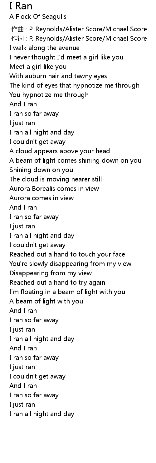 | [00:01.00] | 作词 : P. Reynolds/Alister Score/Michael Score |