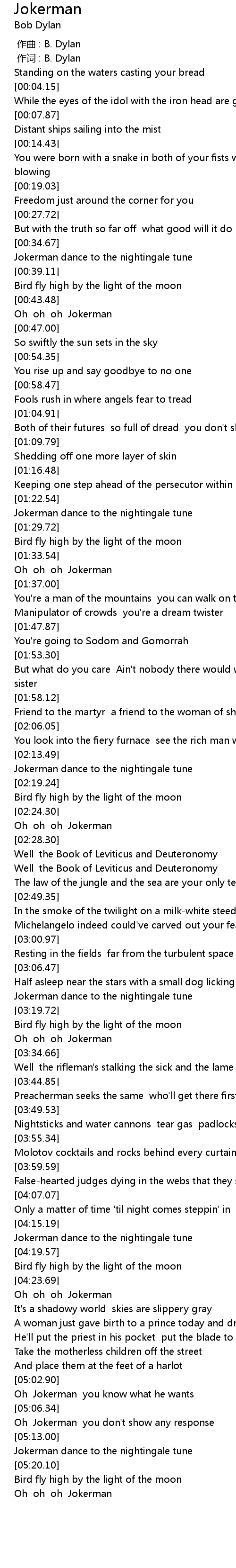 | [03:25.34] | Oh oh oh Jokerman |