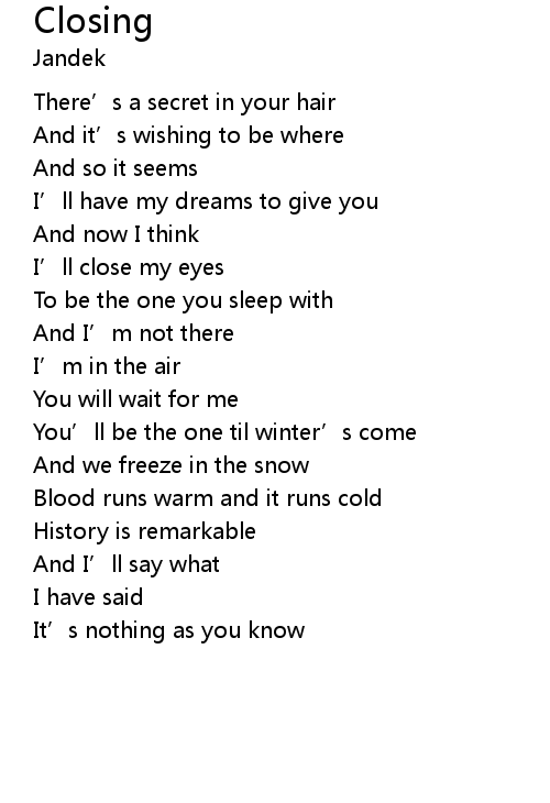 | 歌曲 | Closing |