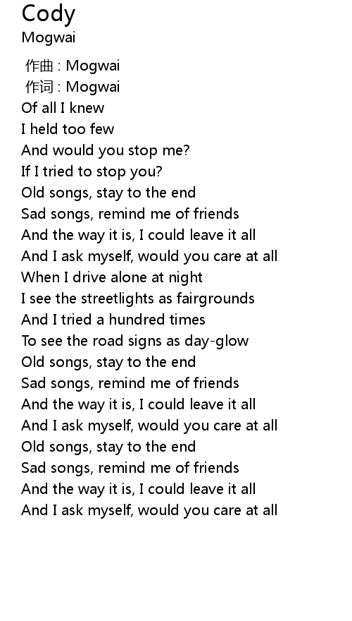 | [01:31.27] | Old songs, stay to the end |