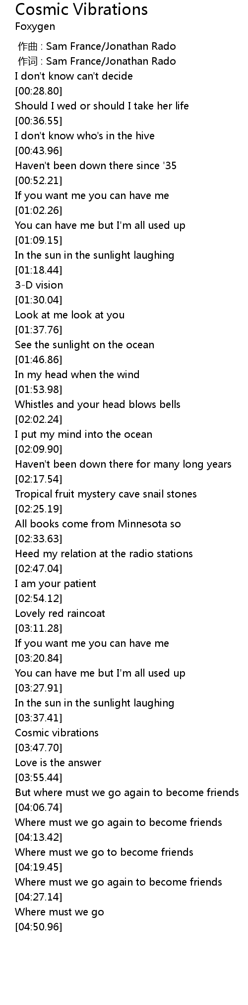 | [03:42.56] | Cosmic vibrations |