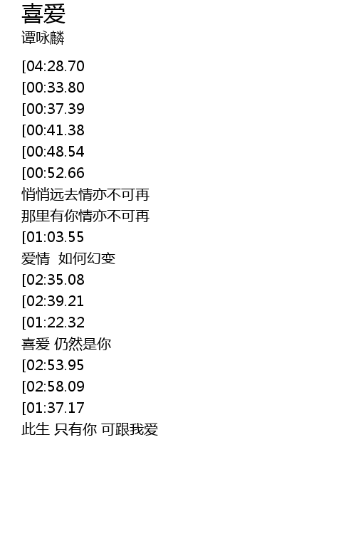 | [03:00.64][01:37.17] | 只要 可有你 不想再别去 |