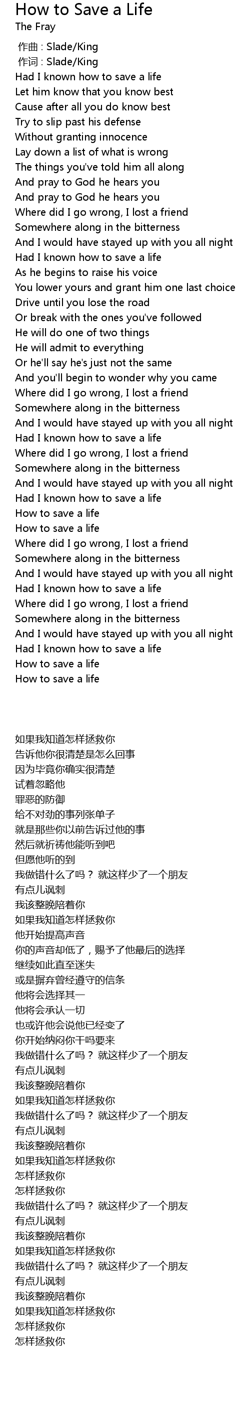| [02:53.29] | Had I known how to save a life |