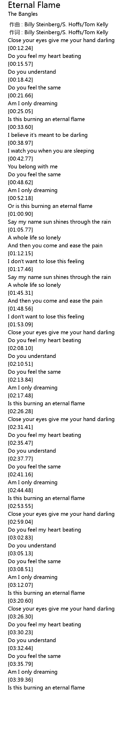 | [00:01.00] | 作词 : Billy Steinberg/S. Hoffs/Tom Kelly |