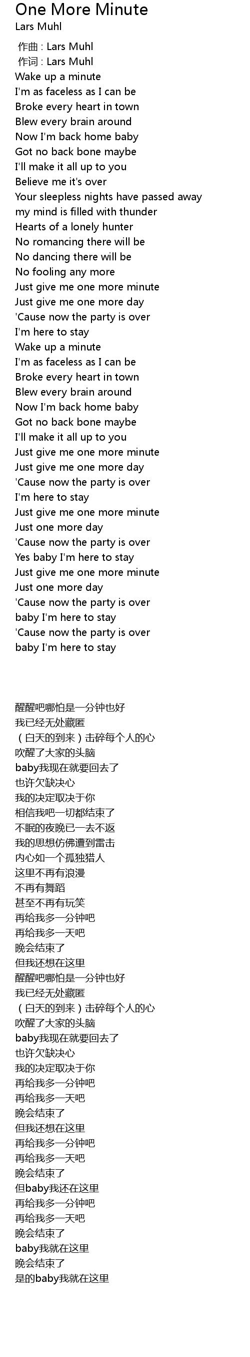 | 歌曲 | One More Minute |