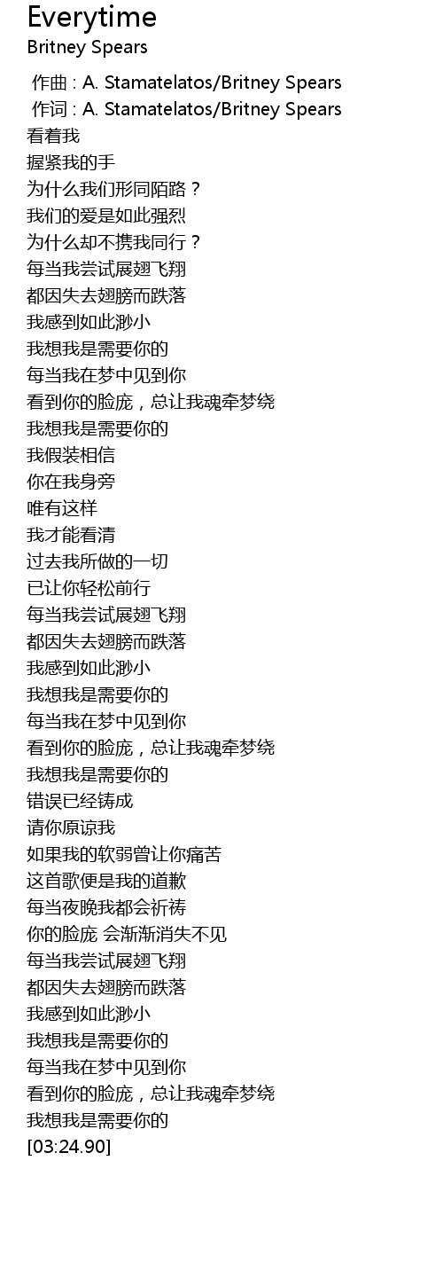 | [00:00.00] | 作曲 : A. Stamatelatos/Britney Spears |