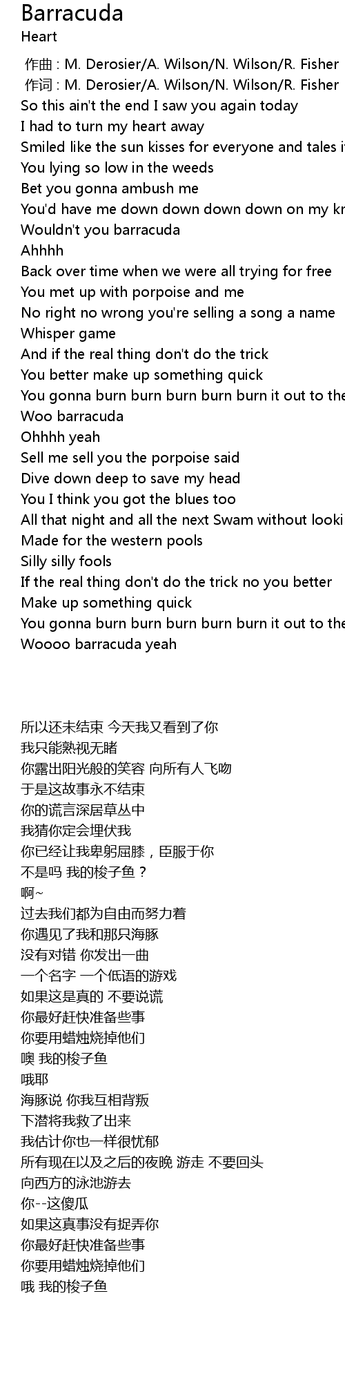 | 歌曲 | Barracuda |