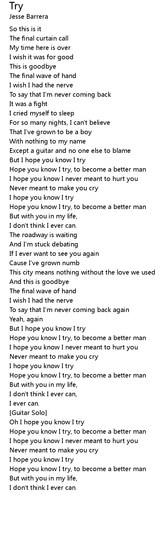 Hope you know I try, to become a better man |