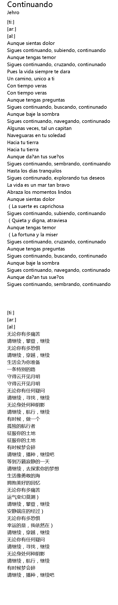 | [02:56.50] | Sigues continuando, buscando, continunado |