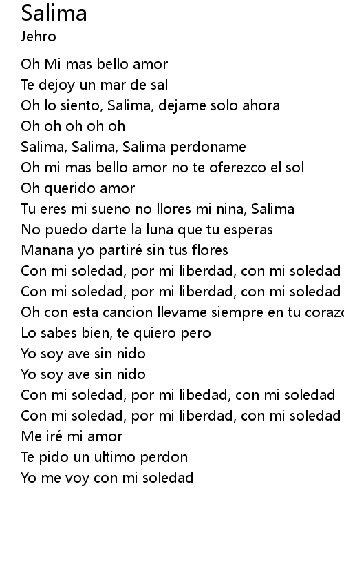 | Tu eres mi sueno no llores mi nina, Salima | |