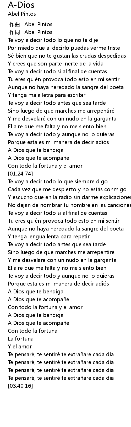 | [01:15.25] | A Dios que te bendiga |