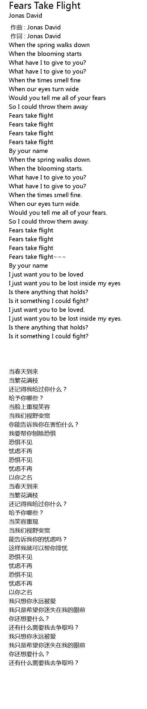 | [00:01.00] | zuò cí : Jonas David |
