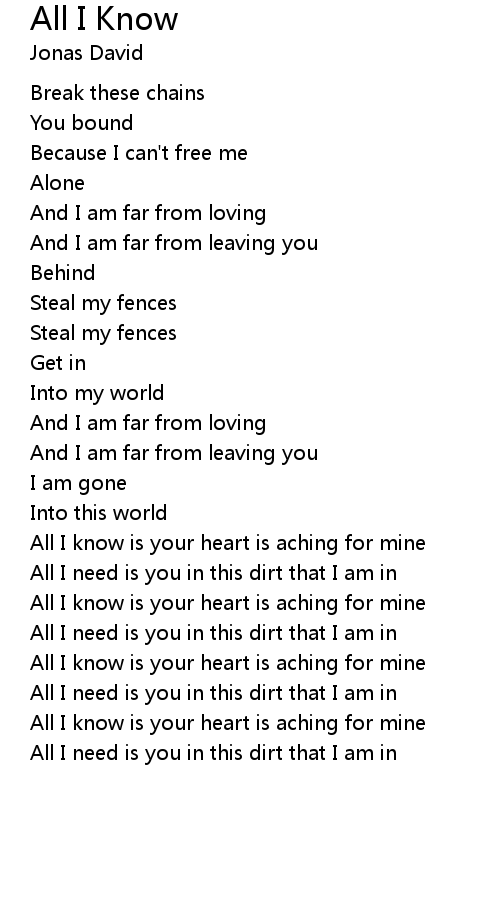 All I know is your heart is aching for mine |